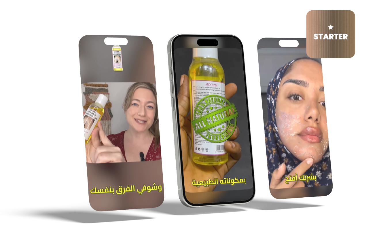 The Starter package is made for businesses testing new products or offers. It includes 1 promotional video with 3 different hook variations, a short custom script, quick niche research, royalty-free marketing music, and 3 ad-ready images (thumbnails).