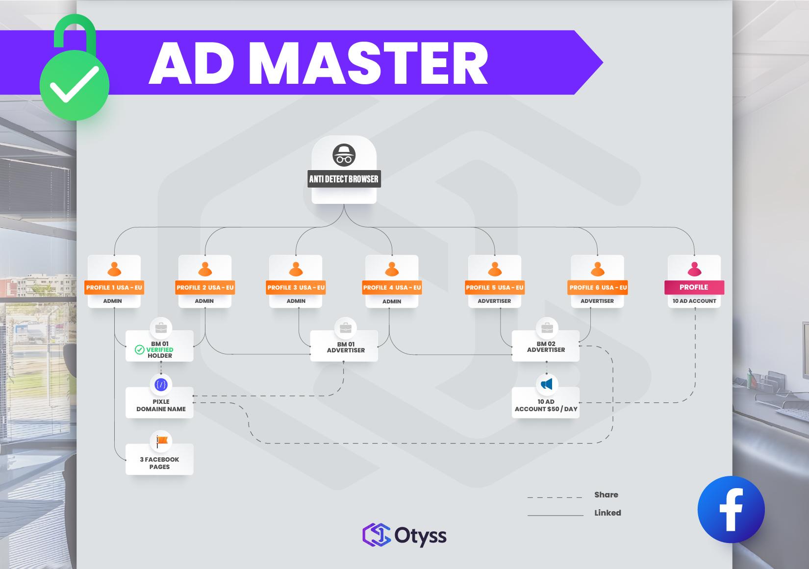 Our backup structure protects your advertising assets, pixels, and domains stay safe in holder accounts while you run campaigns through linked advertiser accounts.. If any account gets banned, your core assets (pixels, domains) stay secure. So you can keep scaling without losing your advertising assets.