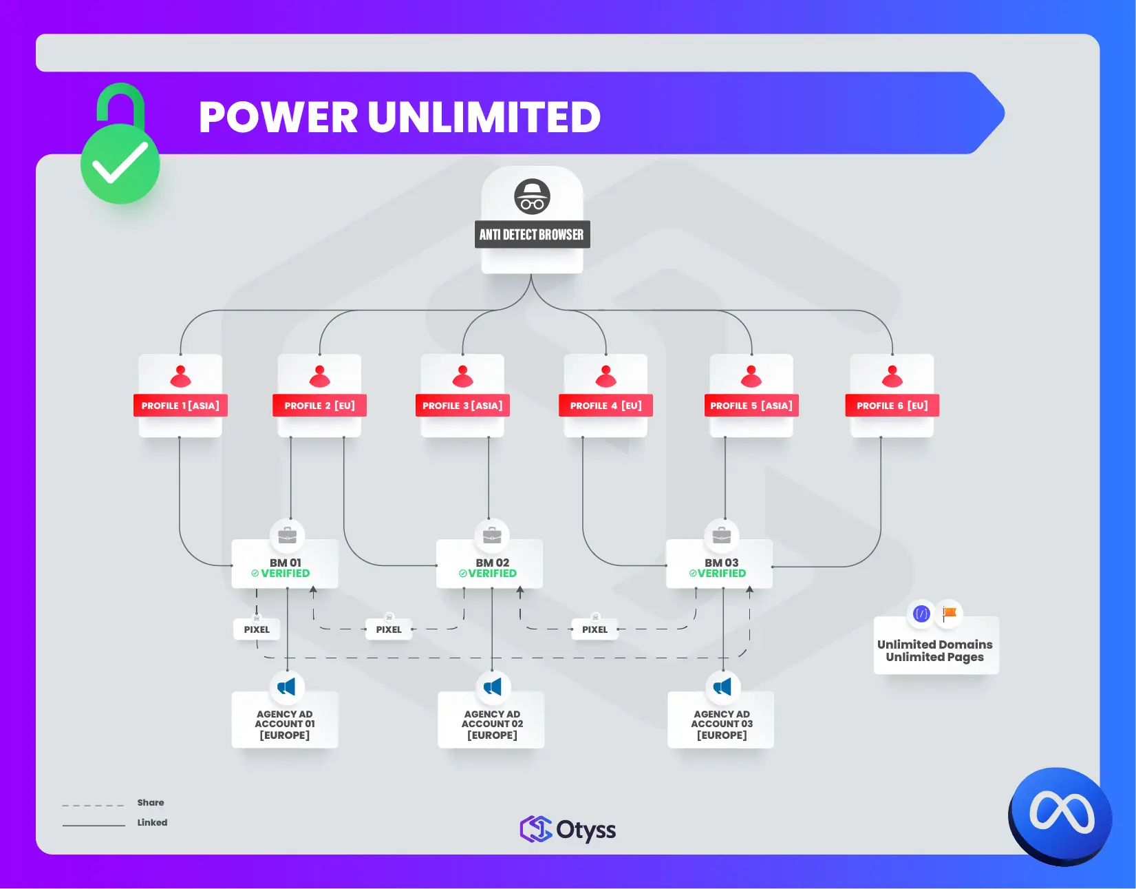 Our backup-linked agency account setup gives advertisers a safe and stable infrastructure: your pixels and domains remain secure while campaigns run through powerful agency ad accounts. This structure protects your assets, avoids repeated restrictions, and keeps your campaigns running longer with maximum scalability.