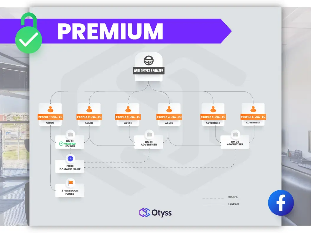 Our backup structure protects your advertising assets, pixels, and domains stay safe in holder accounts while you run campaigns through linked advertiser accounts.